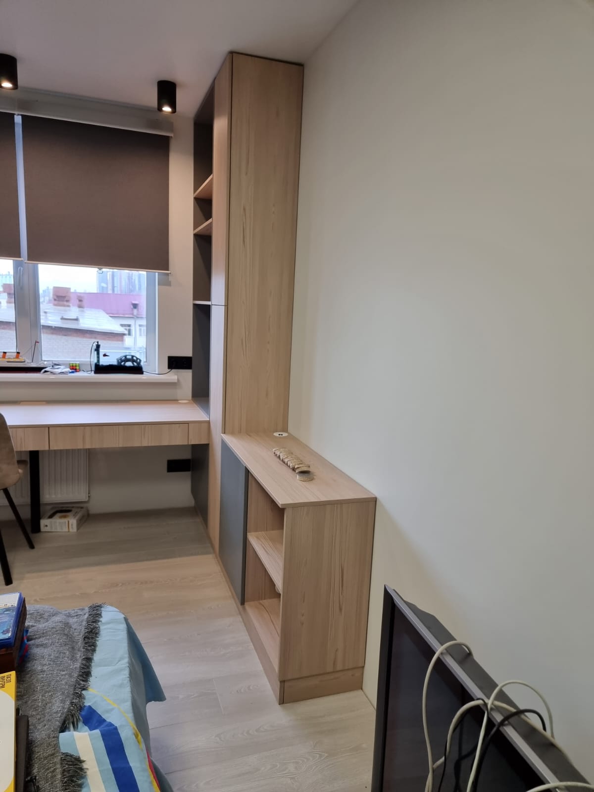 Комплектующие детской «Графит»: наполнение и фасады – ЛДСП Egger, фурнитура – Hettich. Если по каким-то параметрам ни один из представленных вариантов не подходит, вы можете заказать индивидуальный проект. Срок его изготовления в нашей компании занимает от четырнадцати дней.