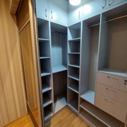 Гардеробная система для кладовки – отличное решение для подсобного помещения. Комплект полок и шкафов поможет грамотно, эргономично использовать доступное пространство. Удобные ниши и тумбы позволяют сложить и развесить, расставить любые предметы, одежду, обувь, аксессуары.
