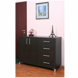 Модель состоит из четырех вместительных выдвижных ящиков, в них можно вместить большое количество вещей. В комоде можно не только хранить одежду, на него можно поставить телевизор, ноутбук, книги, фоторамку или цветы.