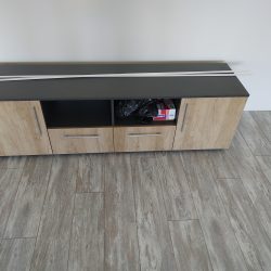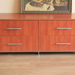 Комод двухцветный Вишня-Бук станет идеальным вариантом, если вы хотите разбавить цветом интерьер помещения. Лаконичный дизайн скрадывает его крупные габариты. Верх комода представляет собой ровную плоскую поверхность, где удобно разместить телевизор или другую технику.