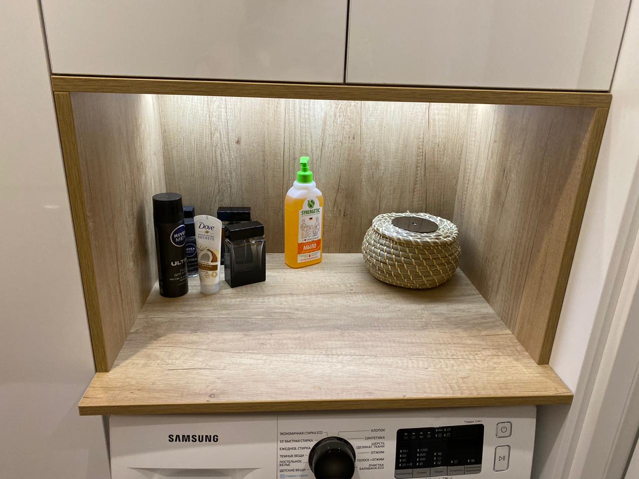 - подвесная тумбочка с нишей, которая предназначается для стиральной машины;
