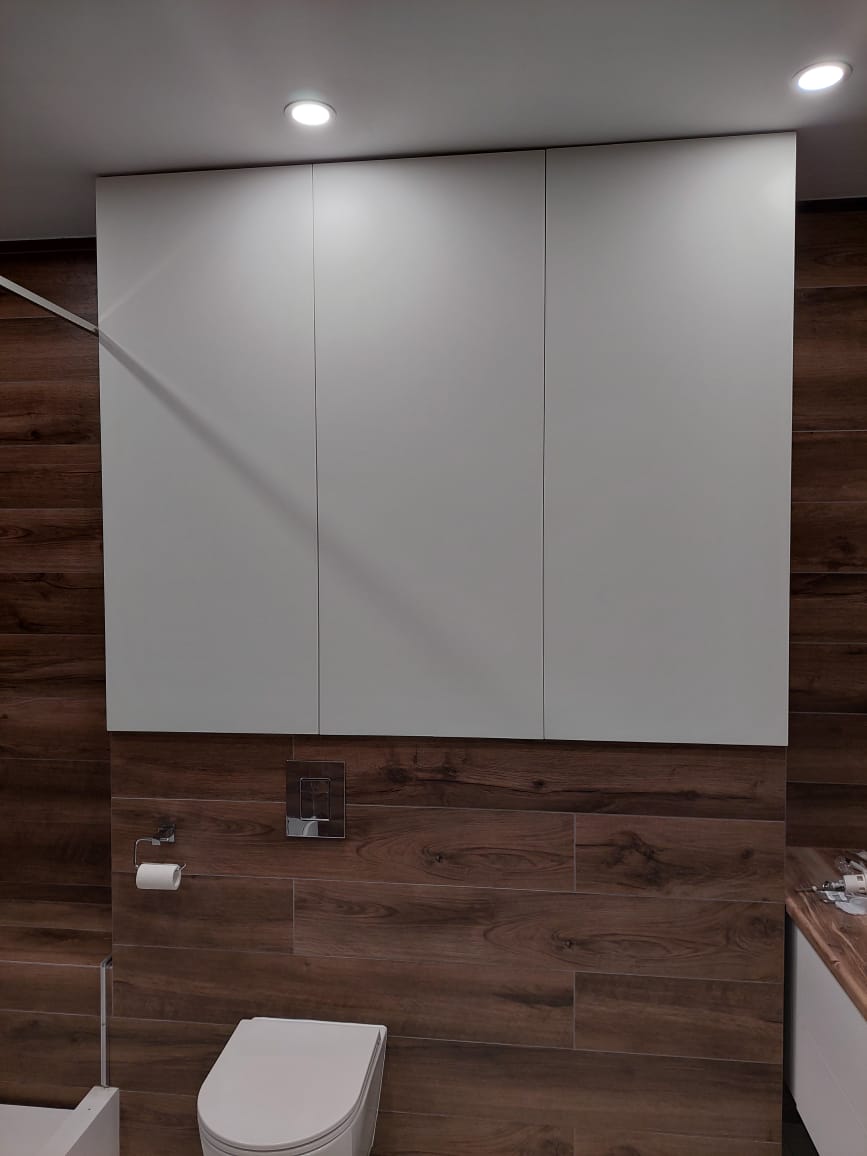 Этот комплект мебели для ванной комнаты практичен и удобен. Шкаф делится на несколько одинаковых отделений. Три двери позволяют удобно расположить внутри полотенца, средства личной гигиены или уходовую косметику.