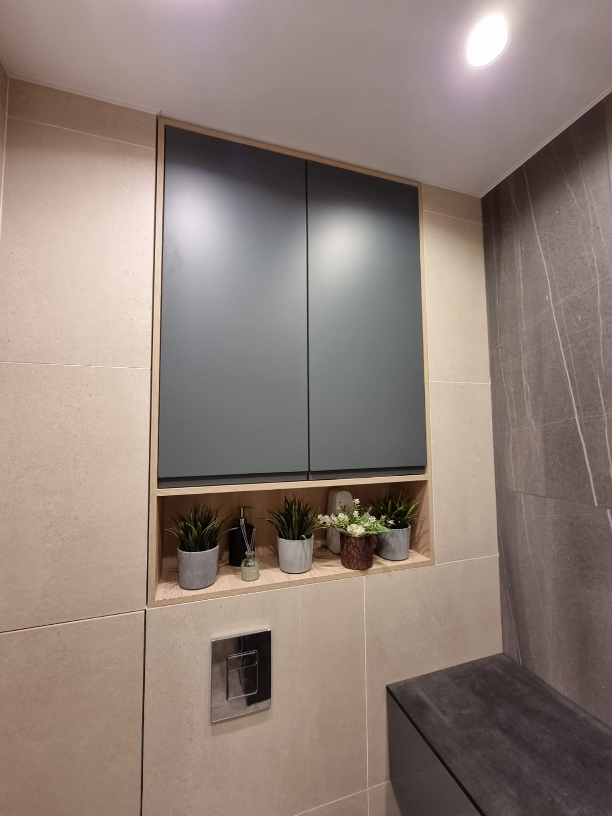 Компания ДелКонт выполняет заказы по изготовлению комплекта мебели «Мидл» с учетом параметров ванной комнаты. Замеры на месте сделает наш специалист. С клиентами обсуждаются все нюансы дизайн-проекта, который отправляется в производственный цех только после утверждения и внесения предоплаты.