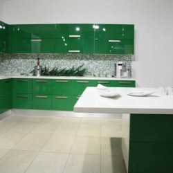 В таком расположении столы с рабочими поверхностями и бытовые приборы аккуратно и продуманно выстраиваются у смежных стен. Это удобное, практичное и стильное решение кухонной планировки.