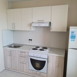 Представленная модель выполнена из самого популярного и доступного на сегодняшний день материала – ЛДСП. Эстетичности кухне придаёт скрытая внутри фасадов фурнитура.