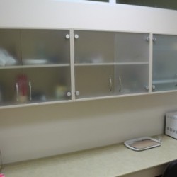 Каркас изготовлен из ЛДСП. Фасады выполнены из МДФ. Обрамление по периметру из алюминия. Такая комбинация позволят надежно защитить края дверок и шкафов от попадания внутрь влаги, при этом выглядит очень стильно.