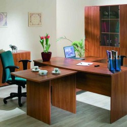 Продуманное наполнение гарнитура позволит разместить все необходимые вещи и документы в идеальном порядке. Комплект деловой мебели имеет ряд достоинств: