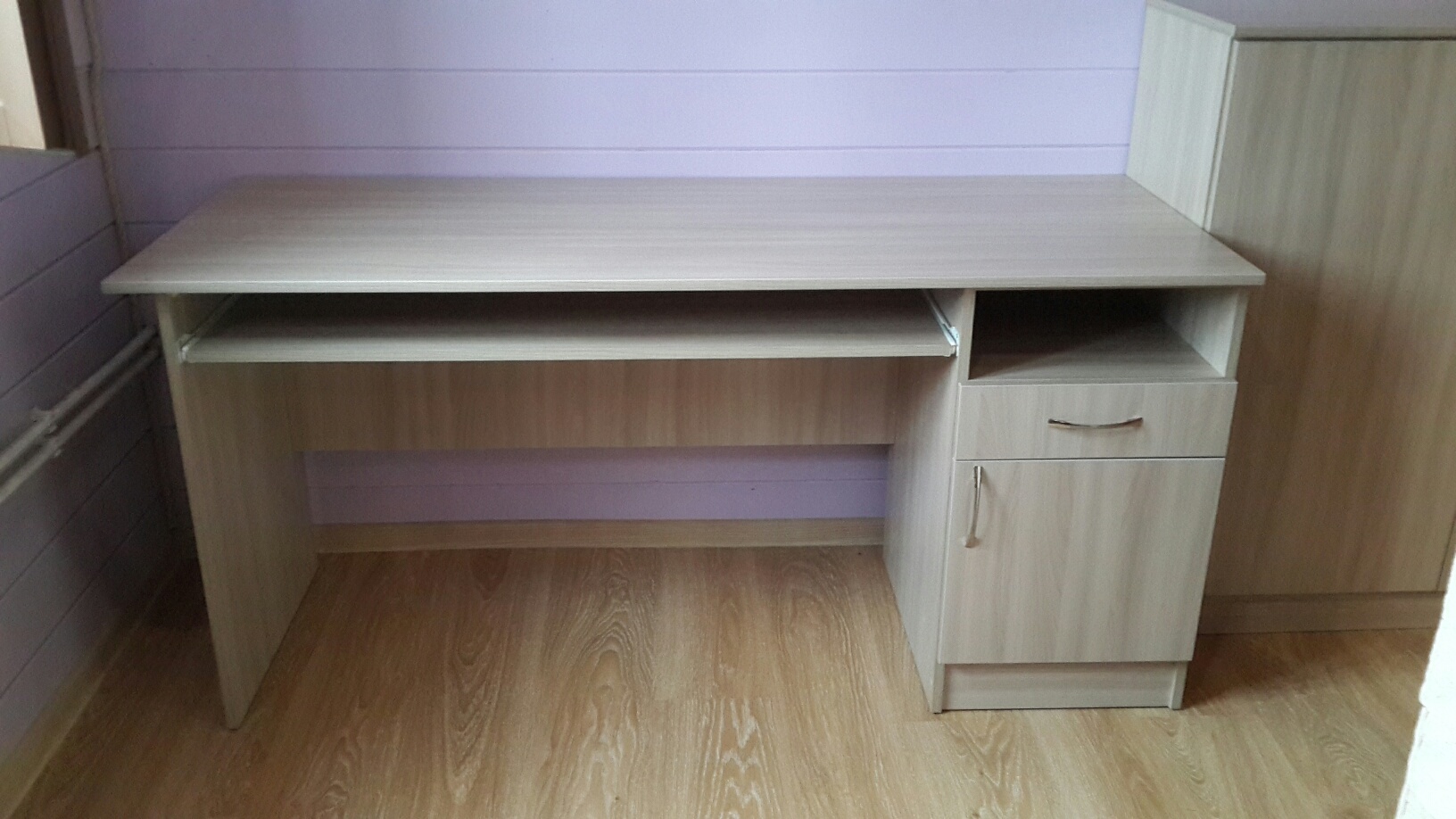 Мебель для рабочего места «Дуб молочный» — идеальный вариант гарнитура в светлых тонах. Гармонично впишется в интерьер небольшого кабинета с отделкой под дерево. Приятный оттенок мебели не утомляет, он производит впечатление респектабельности и располагает к доверию. Очень хороший вариант для вашего офиса или отдельного кабинета.