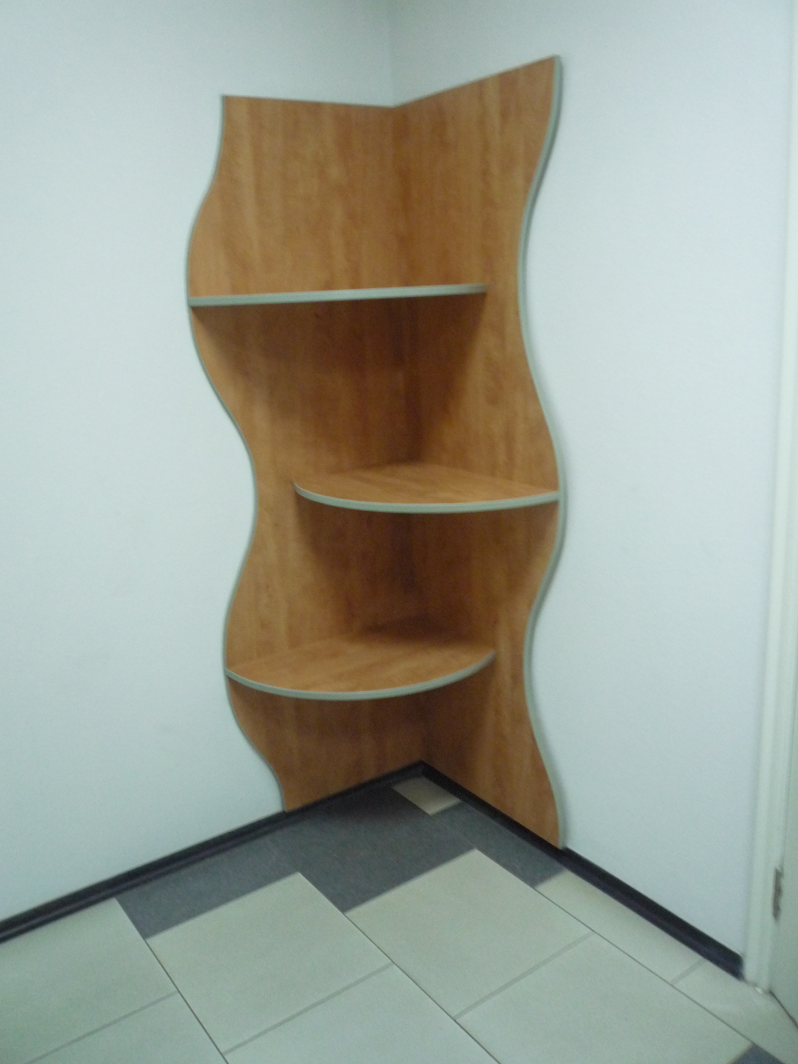 Комплект мебели «Русская ольха» — идеальный вариант оборудования компактного рабочего места. Настенная угловая полка оригинальной волнообразной формы создаст уют и неповторимый колорит. Дополнит композицию шкаф для документов, письменный, компьютерный столы и мобильная тумбочка.