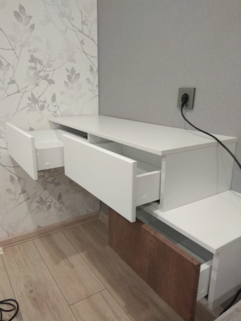 Прикроватная тумба выглядит достаточно компактно, однако, в ней можно скрыть от посторонних глаз множество мелких деталей, необходимых в быту. Выдвижные ящики оснащены новомодными доводчиками, что делает мебель не только удобной, но и очень стильной, а также функциональной.