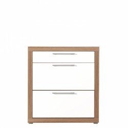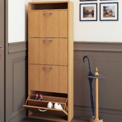Тумба для обуви цвет «Дуб молочный» состоит из двух отсеков, оснащенных откидным механизмом и полочками. С их помощью Вы с легкостью достанете именно ту пару обуви, которая была Вам нужна. В верхней части предусмотрено открытое пространство с полкой. Здесь можно разместить все необходимые мелкие вещи – ключи, документы и др. А верхняя полка отлично подойдет для хранения сумок, рюкзаков и пакетов. На нее же можно поставить домашние цветы.