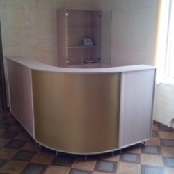 Оригинальное сочетание основного зеленого цвета стойки-ресепшн «Зеленый фон», со столешницей насыщенного синего цвета, выглядит очень стильно. Модель угловая, что дает возможность сэкономить площадь помещения. Отлично продуман дизайн для размещения компьютера, что создает комфортное и удобное рабочее место для работника. А небольшая ниша великолепно подойдет для хранения документов, папок или других рабочих принадлежностей. Заказать ресепшн и другую офисную мебель вы легко можете на сайте нашего интернет – магазина: +7 (473) 2-919-557.
