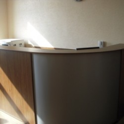 - Модель этого ресепшна имеет компактные размеры и закругленную угловую форму. За счет такой конфигурации ее можно размещать в ограниченном по площади пространстве.