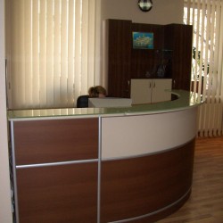 - функциональность – ресепшн кроме разделения помещения на две отдельные зоны, имеет прозрачную витрину, для размещения лекарств;