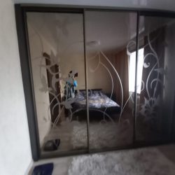 Данный шкаф имеет весьма интересное цветовое исполнение. Оригинальные вставки приглушенного цвета и зеркальные панели фасадов смотрятся очень элегантно. Шкаф-купе в гостиную из красного пластика будет особенно актуален для помещения, выполненного в современном стиле. Его также можно комбинировать с другими элементами мебели: шкафчиками, тумбами, полками.