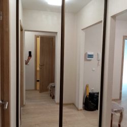 Шкаф обрамлен зеркалом, что визуально расширяет комнату добавляя ей света. Светлый цвет наполняет комнату воздухом и придаёт «легкость» интерьеру. Светлая мебель — это излюбленный приём дизайнеров при оформлении небольших помещений.