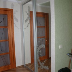 Шкаф выполнен в очень приятном бежевом цвете. Три стеклянные вставки с легкостью заменят вам зеркало и помогут визуально увеличить пространство.