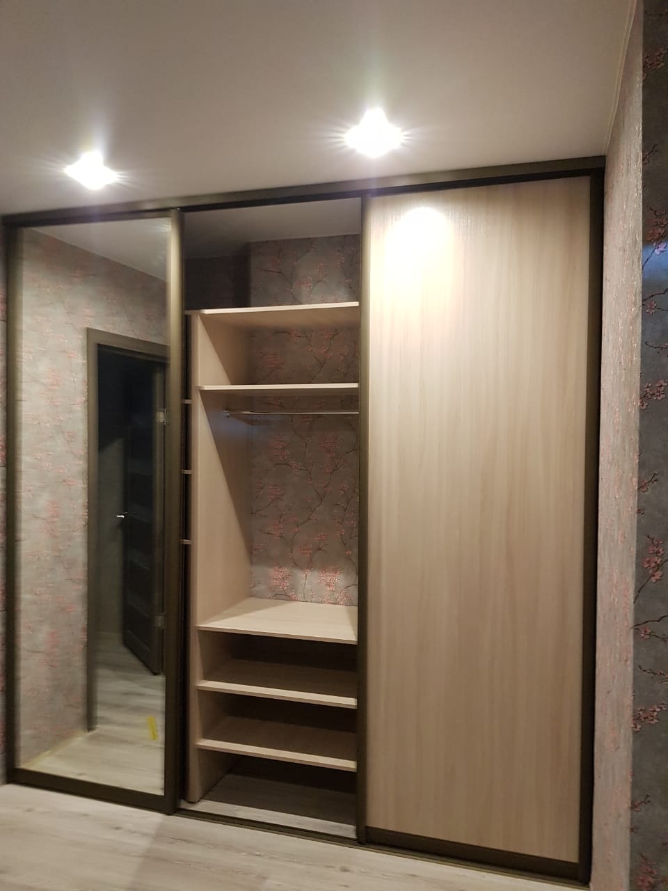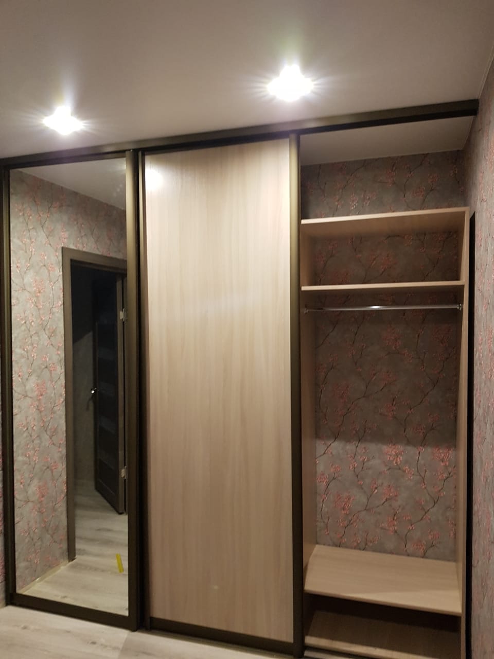 - Зеркальная дверь поможет перед завершающими штрихами осмотреть готовый образ с головы до ног;