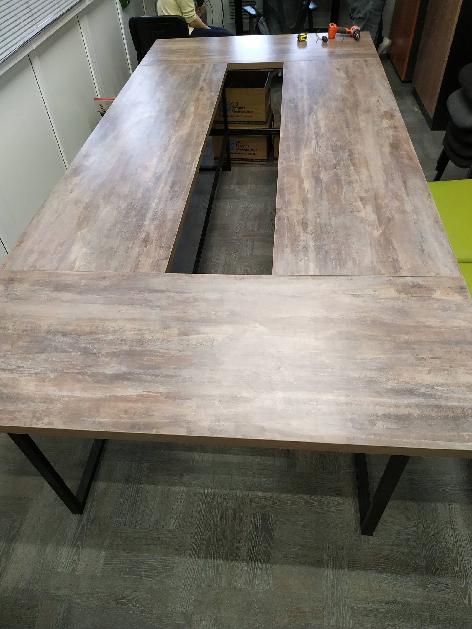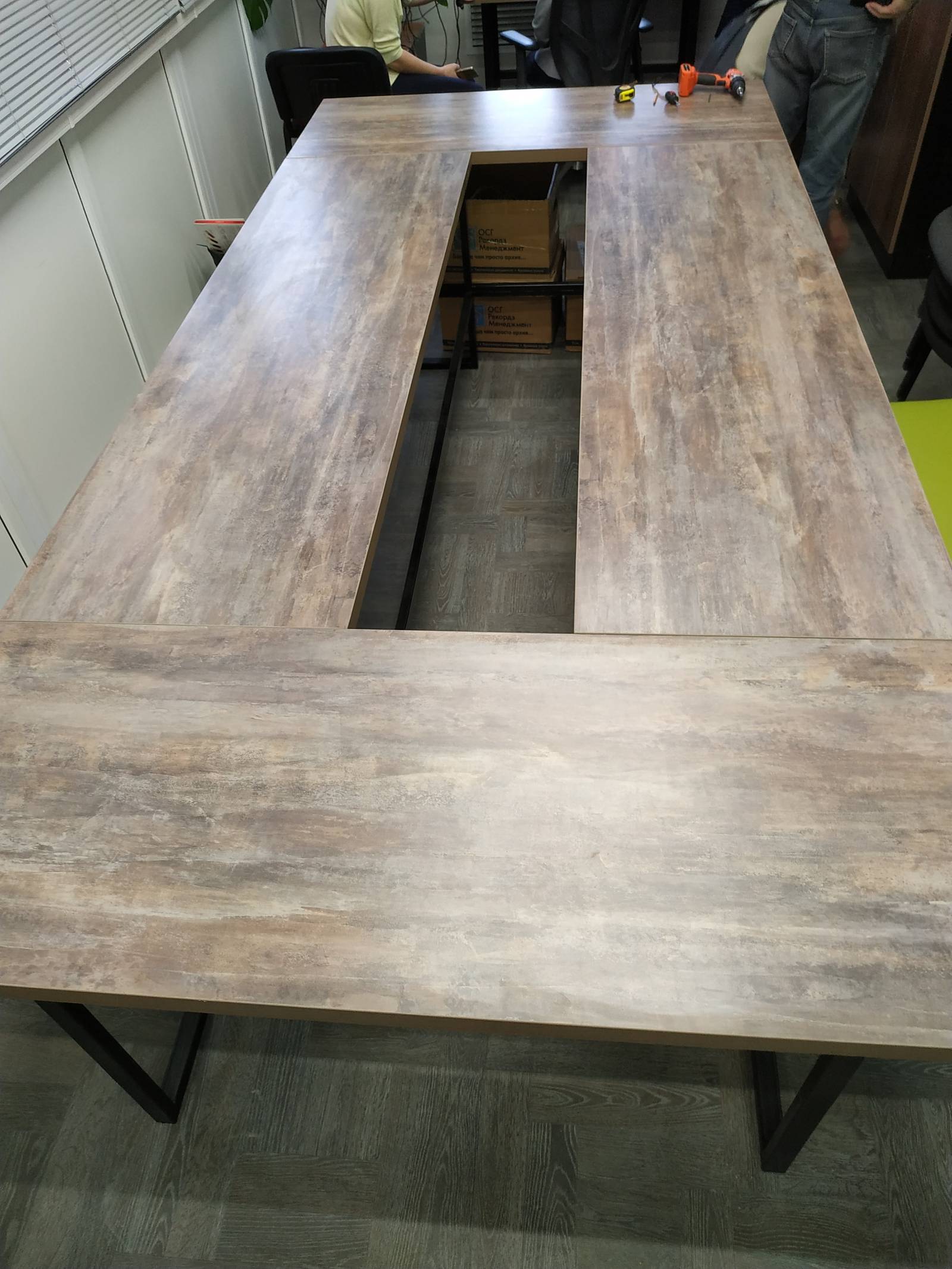 Нельзя не отметить высокую практичность и функциональность конструкции, за столом легко может разместиться небольшой коллектив для проведения совещания или планерки. Цвет фасадов успокаивает, что положительно сказывается на эмоциональном состоянии работников.
