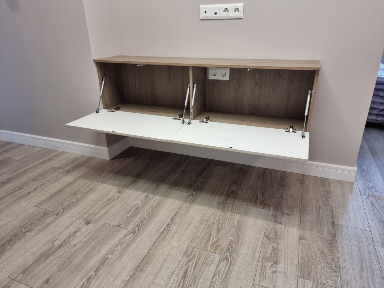 Потребуется предоплата заказа перед тем, как дизайн-проект отправят в мастерскую. На изготовление мебели тратится около двух недель. Доставка по Воронежу, подъем на этаж, установка тумбы под ТВ в доме клиента входят в спектр услуг. Менеджер заранее предупредит о приезде машины. На товар установлен гарантийный срок обслуживания в течение 1 года.