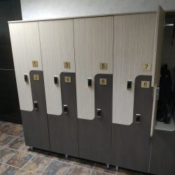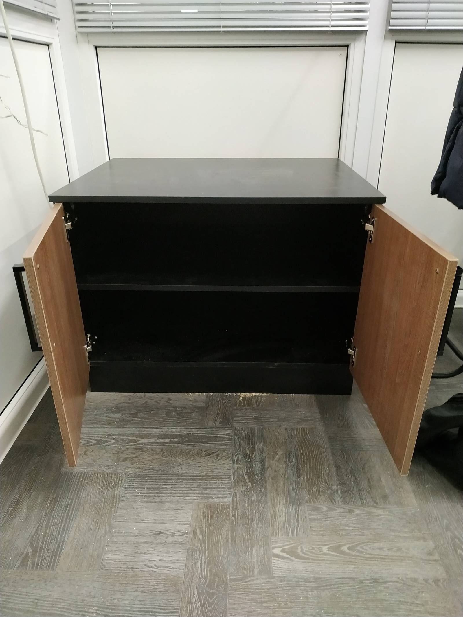 Распашные дверцы закрывают содержимое от посторонних глаз, и дают возможность сохранить его в соответствии с санитарными нормами. Внутренняя полка шкафчика образует две поверхности для хранения.
