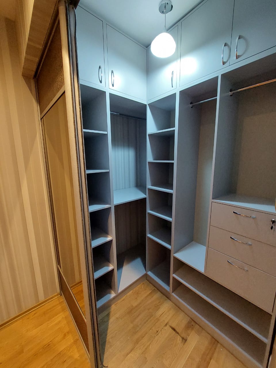 Обратитесь за помощью в нашу компанию, если вам необходимо приобрести гардеробную. Наши дизайнеры составят дизайн проект по вашим меркам, подберут материалы и фурнитуру, сделают расчет. При одобрении заказа, наши замерщики приеду на объект и еще раз произведут точный замер, чтобы при установке не произошло накладок.