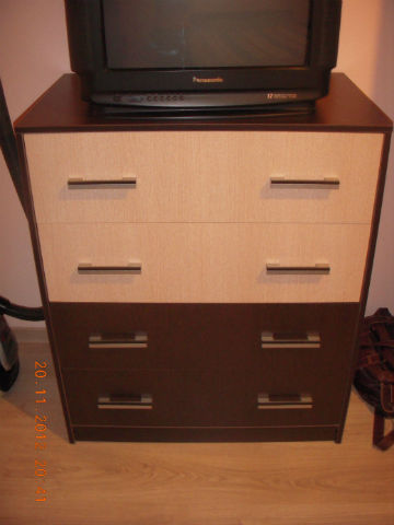 Производство комодов осуществляется из материалов высокого качества, что исключает возможность появления трещин и других повреждений. Качественная зарубежная и отечественная фурнитура обеспечивает долгий срок службы мебели. Эргономичные ручки добавляют ещё больше удобства в использовании мебели. как дизайн каждого универсален, прост и одновременно элегантен. Фурнитура придаёт им стильный, завершенный вид.