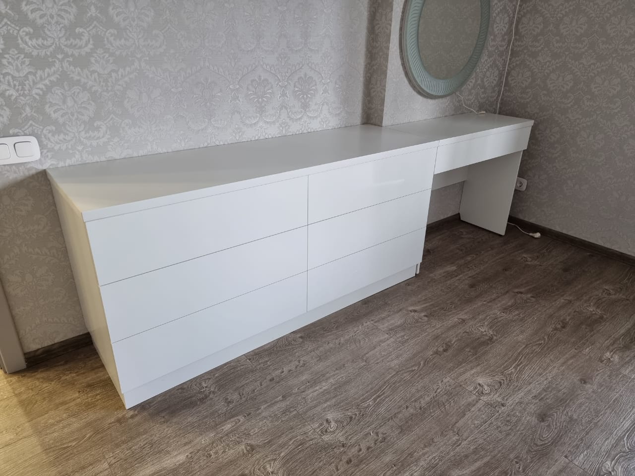 Комод обычно состоит из 4-6 вместительных ящиков и шкафов, что дает возможность компактно разложить одежду, постельное бельё или другие вещи, которые будут находиться у вас под рукой. Часто они незаменимы именно с практической стороны, но также дополняют интерьер, придавая ему завершённость.
