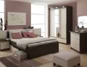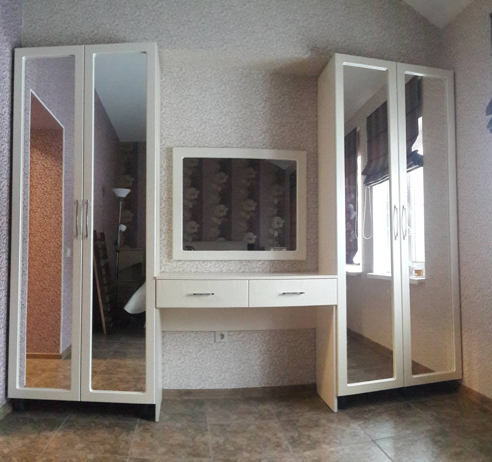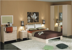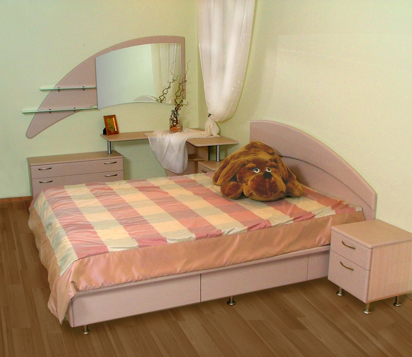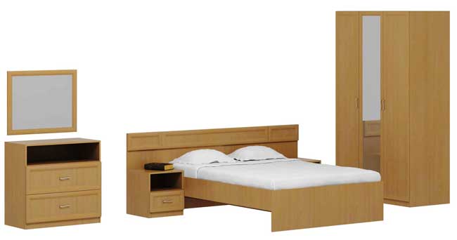 Комплекты для спальни помимо кроватей могут комплектоваться шкафами, комодами, тумбами, туалетными столиками.