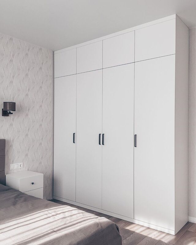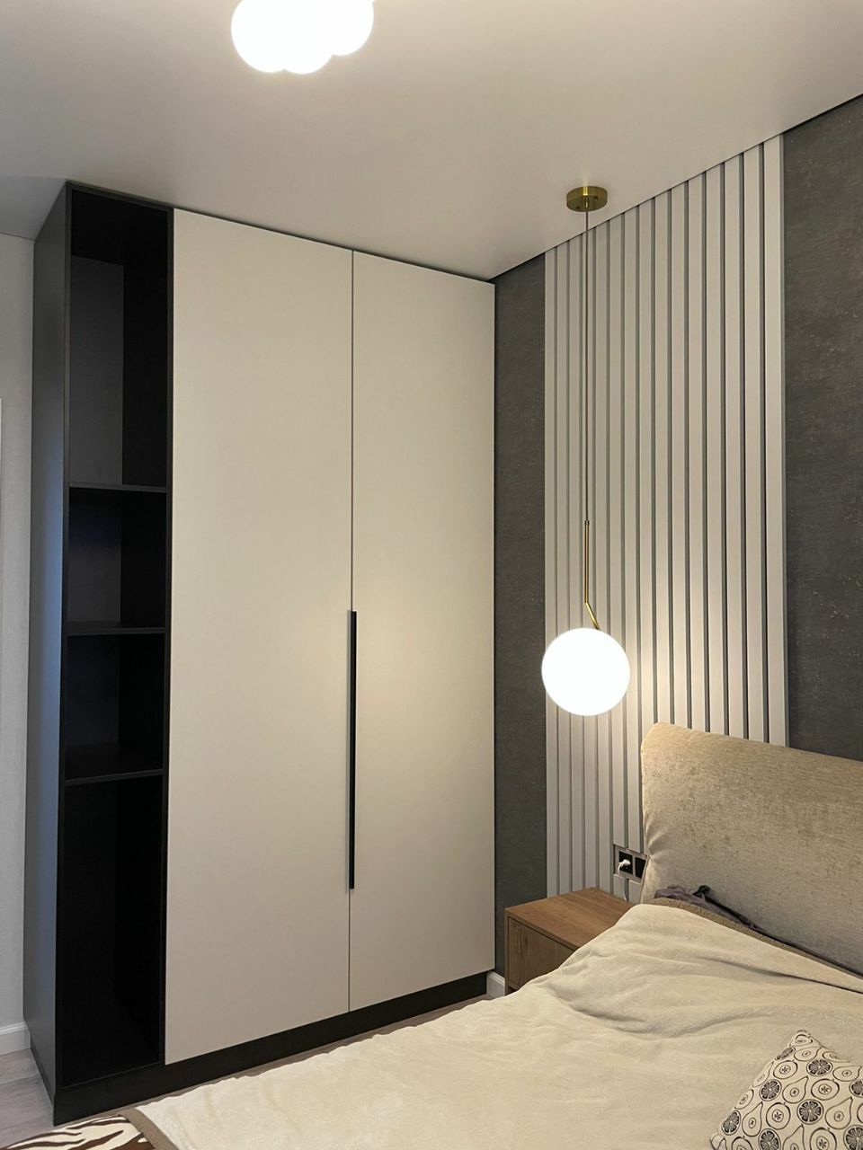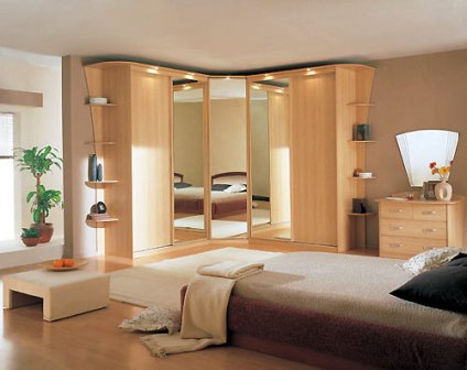 Кроме кровати в спальне располагают комоды и платяные шкафы для хранения вещей. Важно, чтобы они гармонично выглядели, не занимали много места и вмещали в себя все необходимое. Самым оптимальным вариантом является совмещение гардеробной комнаты и спальни. В небольшой комнате можно установить шкафы — купе с зеркальными дверями.