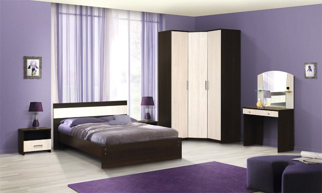 Для того чтобы мебель в спальне была в одном стиле, можно купить готовый гарнитур. Наборы досконально продуманы технологами так, чтобы в них было достаточно места для одежды, книг и мелких предметов.
