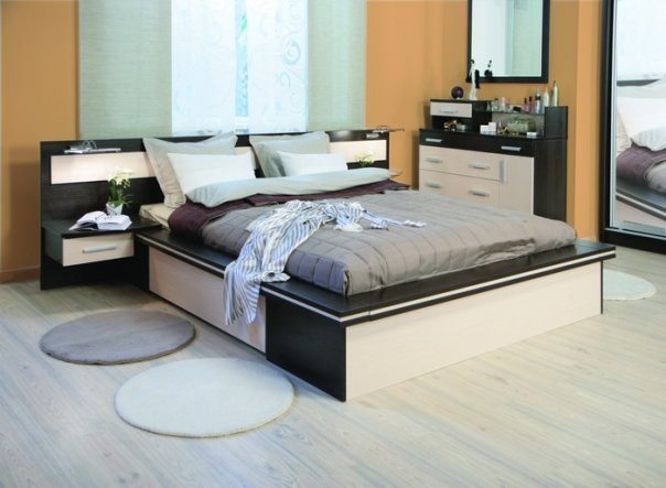 Ну а центром любой спальни является, конечно же, кровать. Именно ее выбору нужно уделять повышенное внимание, чтобы никакие неудобства не омрачали Ваш сон. Стандартная кровать для спальни состоит из двух частей — каркаса и матраца. Именно от каркаса в первую очередь зависит срок службы кровати и ее прочность, а во вторую очередь — ее дизайн и внешний вид. Зачастую каркас кровати изготавливают из древесины твердой породы, ЛДСП — плит или металла. Все эти материалы достаточно прочны и долго прослужат, если кровать собрана качественно.
