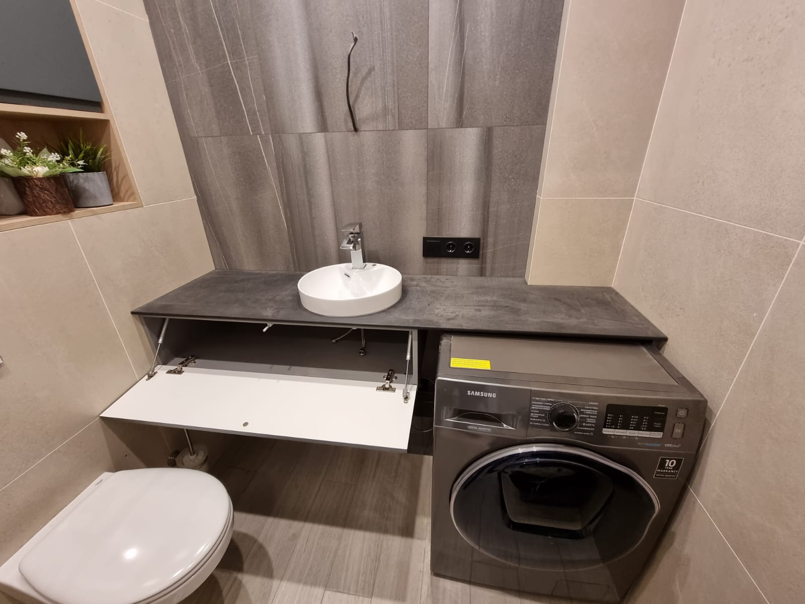 Тумба для раковины выручит обязательно. Ведь внутри располагаются совершенно разные зоны хранения, которые смогут вместить достаточный объём бытовой химии, туалетных принадлежностей и другиенеобходимые мелочи, которые всегда должны быть под рукой.